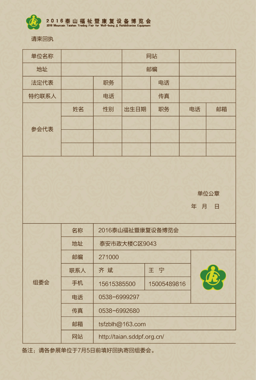 中国残疾人辅助器具中心、山东省残疾人联合会、泰安市人民政府邀请您参加“2016泰山福祉暨康复设备博览会”,现将有关事项告知如下: