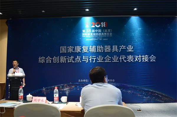 为深入推进泰安市国家康复辅助器具产业综合创新试点工作开展,扩大泰安市试点地区知名度,组织筹备好2018第三届泰山国际福祉暨康复设备博览会,6月6日-8日,泰安市赴北京参加了2018中国(北京)国际康复辅助器具博览会,举办了泰安市国家康复辅助器具产业综合创新试点地区及泰山“一会一园一论坛”项目推介会。泰安市打私办专职副主任彭恒玖,市残联党组书记、理事长刘学永,市民政局、财政局、泰安高新区、肥城健康产业园及各县市区残联负责同志,德国奥托博克、冰岛奥索国际等40余家国内外知名康复辅助器具企业负责人参加。中国康复辅助器具协会会长闫和平、秘书长毛勇、原副会长卞卫国出席推介会。